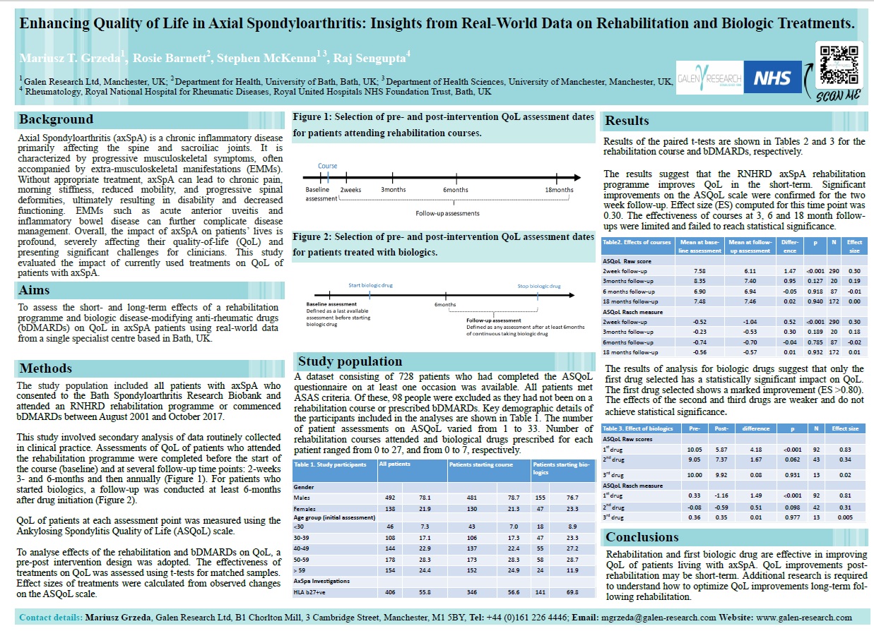 Our poster presenting insights from real-world data on rehabilitation and biologic treatments in AxSpA will be on show at the BritSPA conference in the Ardencote Hotel, Warwickshire tomorrow.